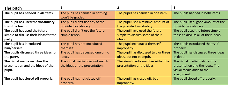 Assessment grid : the pitch