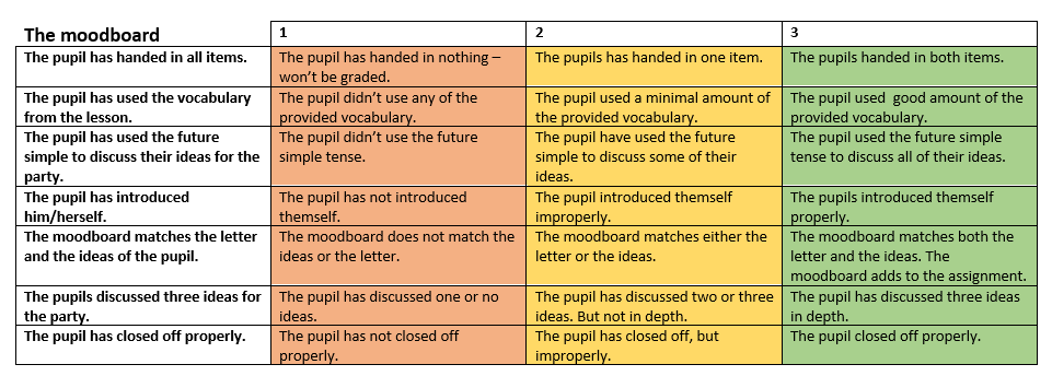 Assessment grid : The moodboard
